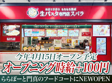 【接客】生パスタ専門店のオープニングスタッフ大募集★オープニング時給+100円☆