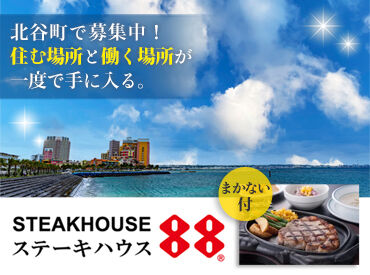 【ステーキ88の店舗スタッフ】この春、新しい自分に出会うチャンス★*寮つきの北谷バイト